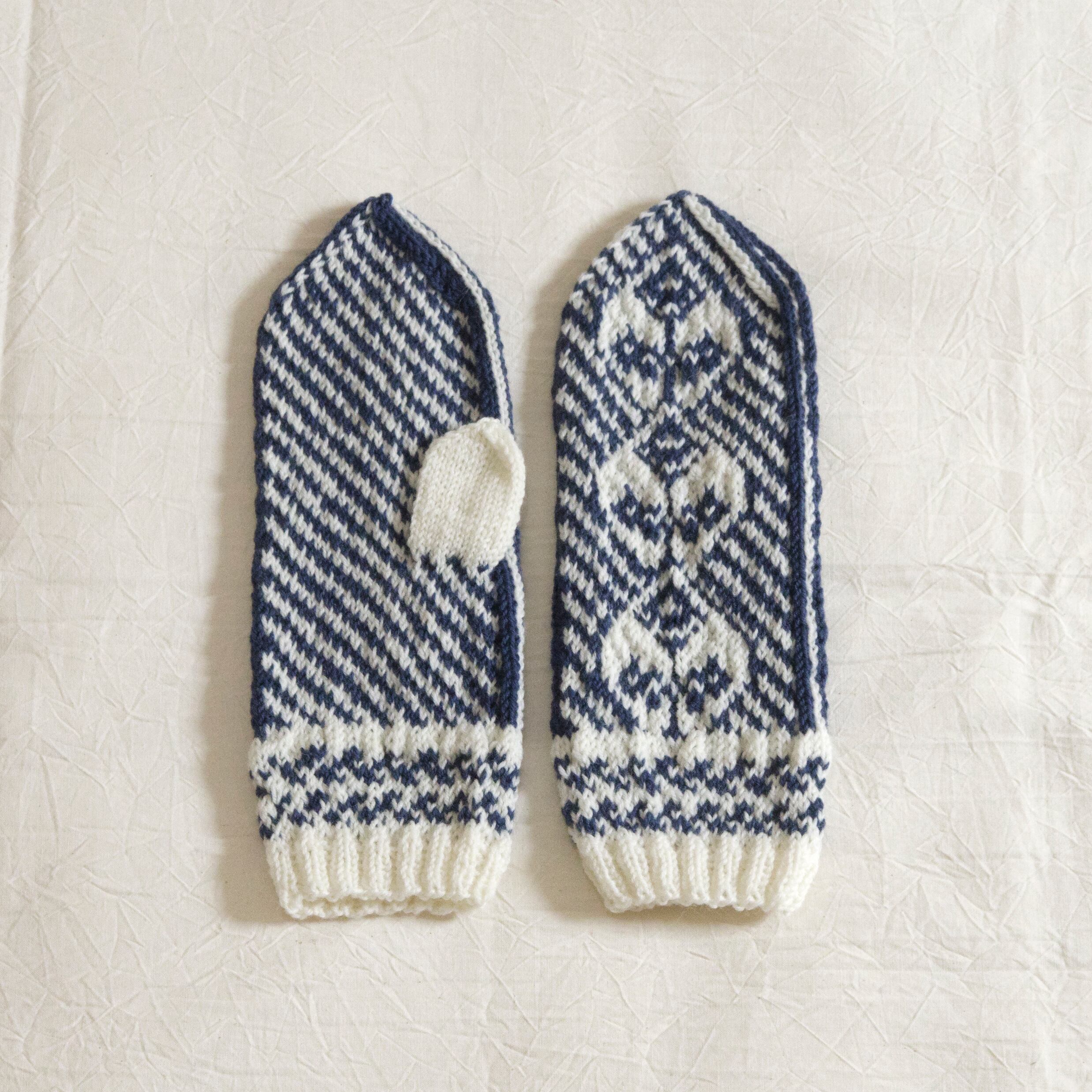 花柄ミトン(紺と白)